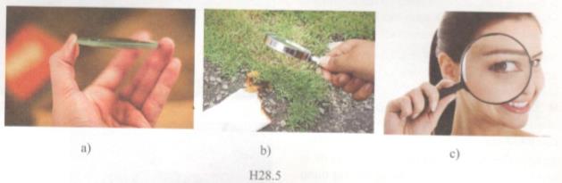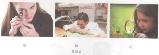 Trong cuộc sống, kính lúp có nhiều hình dạng và kích thước khác nhau (hình H28.4).