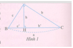 Xét tam giác vuông ABC vuông tại A, cạnh huyền BC = a, các cạnh góc vuông AC = b và \(AB = c\). Gọi AH = h là đường cao ứng với cạnh huyền và \(HC = b’,HB = c’\) lần lượt là hình chiếu của AC, AB trên cạnh huyền BC.