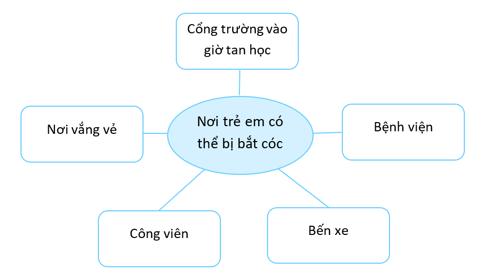 Em hãy điền vào sơ đồ những địa điểm trẻ em có nguy cơ bị bắt cóc