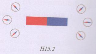 ­- Dụng cụ: Đặt một (hoặc một số) la bàn nhỏ ở các vị trí khác nhau gần một nam châm (hoặc gần một dây dẫn có dòng điện chạy qua), ví dụ như ở hình H15.2.