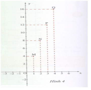 Hùng vẽ các điểm O (0 ; 0), M (1 ; 4), N (2 ; 8), P (3 ; 2), Q (4 ; 16) trong mặt phẳng tọa độ Oxy như hình 4.