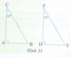 Trong tam giác vuông ABC và tam giác vuông DEF có \(\widehat C = \widehat F = {32^o},\,\,BC = EF\,\,\left( {h.35} \right)\(