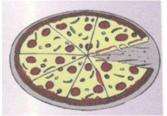 Giải bài tập Một cái bánh pizza được chia thành 8 phần bằng nhau. Em hãy biểu diễn phân số chỉ số phần bánh đã được lấy ra và phân số chỉ số phần bánh còn lại ở hình vẽ trên với quy ước tử số là số