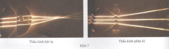 Lần lượt chiếu một chùm tia sáng song song đến vuông góc với bề mặt của thấu kính rìa mỏng và thấu kính rìa dày (Hình H26.7)