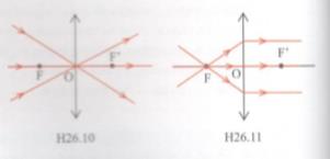 – chùm tia tới (hoặc đường kéo dài của chùm tia tới) giao nhau tại tiêu điểm F của thấu kính (hình H26.11)
