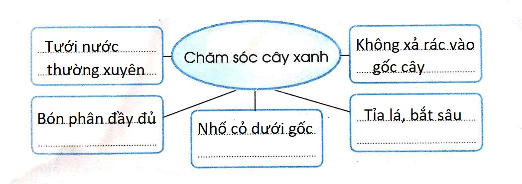 Viết những việc cần làm để chăm sóc cây xanh vào sơ đồ sau: