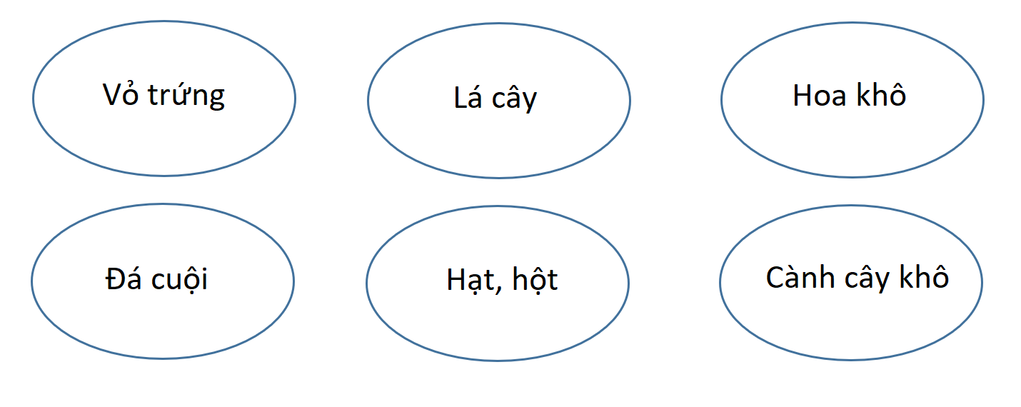 – Em hãy quan sát xung quanh em, tìm ra các vật liệu thiên nhiên.