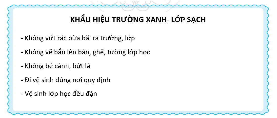 Em hãy làm (viết, vẽ, trang trí) một tấm biển có nội dung nhắc nhở các bạn giữ gìn trường xanh, lớp sạch
