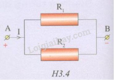 Đặc điểm về cường độ dòng điện và hiệu điện thế trong đoạn mạch gồm hai bóng đèn mắc song song ta đã biết cũng áp dụng được với đoạn mạch gồm hai điện trở mắc song song (hình H3.4).