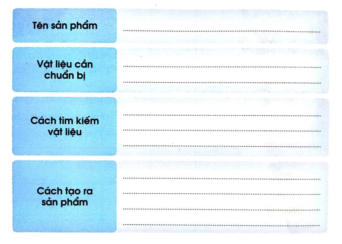 Em hãy viết về ý tưởng làm sản phẩm từ vật liệu thiên nhiên vào phiếu dưới đây: