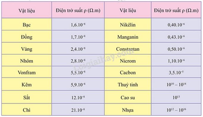 Bảng 4 sau cho biết điện trở suất ở nhiệt độ 200C của một số vật liệu.