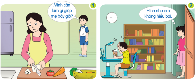 – Hình 2: Chị nhìn thấy em trai đang gặp phải bài khó, em không hiểu bài.