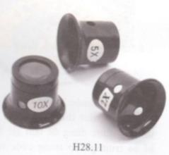 Hãy quan sát các kính lúp trong hình H28.11. Số bội giác được ghi trên mỗi kính lúp. Em hãy cho biết: