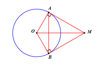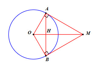 \(MA = MB\) (tính chất hai tiếp tuyến cắt nhau) \( \Rightarrow M\) thuộc trung trực của AB.