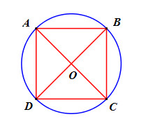 Cho hình vuông ABCD có O là giao điểm của hai đường chéo. Vẽ đường tròn tâm O bán kính R = OA. Hãy cho biết (O) có đi qua tất cả các đỉnh của hình vuông hay không?