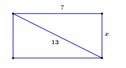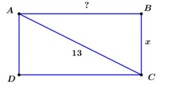 Cho hình chữ nhật có độ dài đường chéo bằng 13, một cạnh có  độ dài bằng x. Hãy tính độ dài cạnh còn lại.