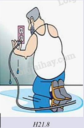 Theo em, người được mô tả trong hình minh họa H21.8 đã vi phạm quy tắc nào về an toàn trong sử dụng điện?