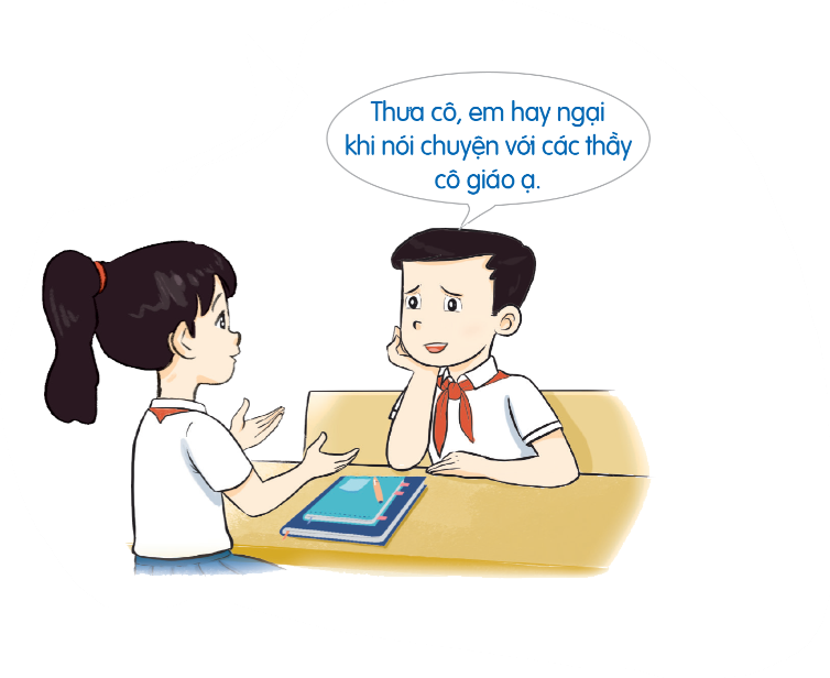 – Học sinh: “ Thưa cô, em hay ngại khi nói chuyện với các thầy cô giáo ạ.”