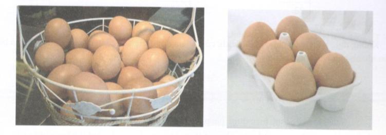 Số vỉ trứng Lan xếp được là 5 vỉ trứng và còn thừa 3 quả trứng