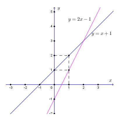 Giải bài tập Vẽ hai đường thẳng y = x + 1 và y = 2x – 1 trên cùng một mặt phẳng tọa độ. Chúng có cắt nhau không ?