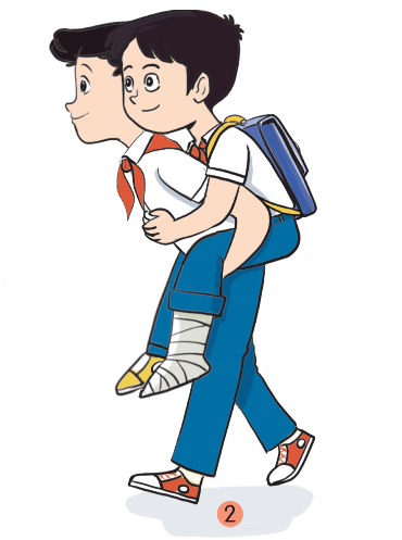Hình 2: Cõng bạn đế trường khi chân bạn bị thương.