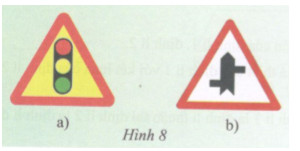 Giải bài tập Hãy đo và so sánh ba cạnh của tam giác màu vàng trong biển báo giao thông ở hình 8a, đo và so sánh ba cạnh của tam giác màu trắng trong biển báo giao thông ở hình 8b.