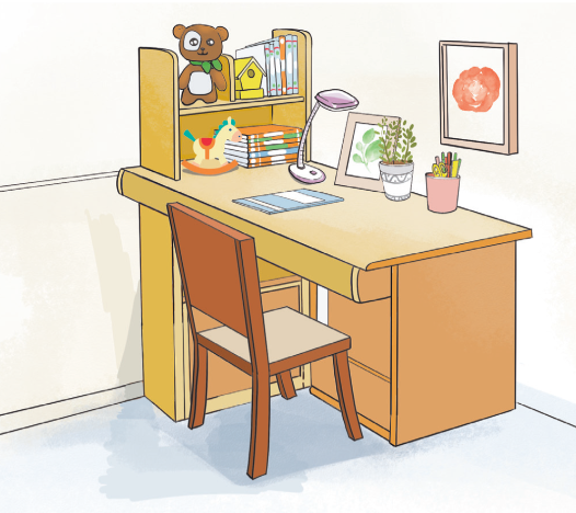 Em có thể tham khảo hình ảnh sau để sắp xếp góc học tập của mình: