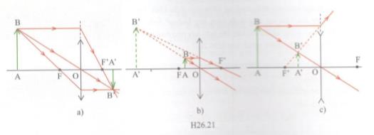 – Khi dựng ảnh như hình H26.21a, ta chỉ cần vữ hai trong ba đường truyền của tia sáng.