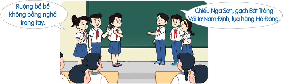 Các nhóm thi tìm những câu thơ, bài hát, hò, vè,… nói về các nghề truyền thống của Việt Nam.