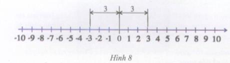 Quan sát trục số trong hình 8, tìm khoảng cách từ mỗi điểm : 1, -1, -2, 2, -3, 3, -6, 6 đến điểm 0.