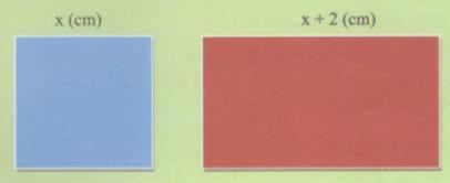 Cho một hình vuông có độ dài cạnh là x (cm) và một hình chữ nhật có độ dài các cạnh là x (cm) và x + 2 (cm)
