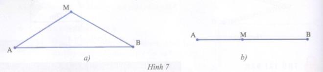 Trong các hình 7a và 7b dưới đây, hãy dùng thước đo để so sánh AM + MB với AB.