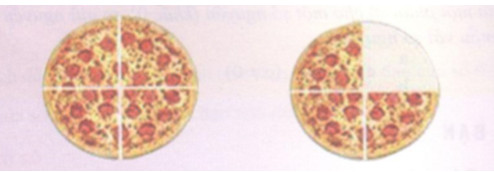 • 1 bánh pizza và \({3 \over 4}\) bánh pizza ta có thể viết gọn là \(1{3 \over 4}\) bánh pizza.