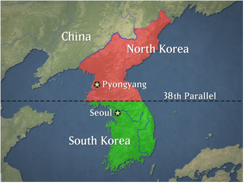Bán đảo Triều Tiên bị chia cắt thành hai miền theo vĩ tuyến 38