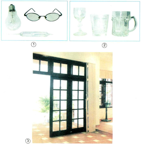 Một số đồ vật được làm bằng thủy tinh như: li, cốc, bóng đèn, cửa kính, chai, lọ, kính đeo mắt …