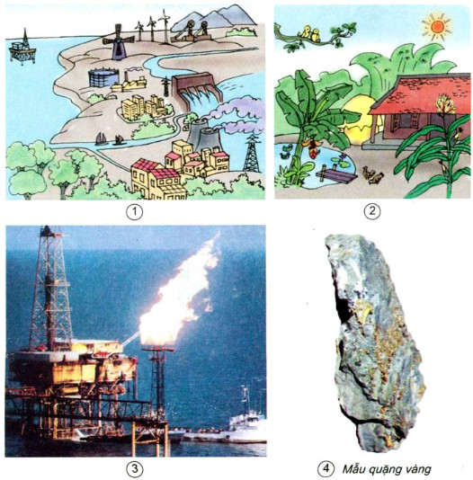 Kể tên một số tài nguyên mà bạn biết. Trong các tài nguyên đó, tài nguyên nào được thể hiện trong những hình dưới đây ?