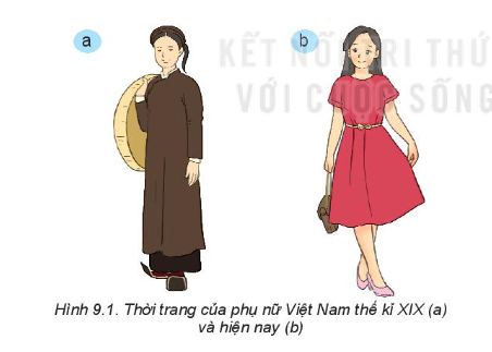 Nêu sự khác biệt về thời trang của phụ nữ Việt Nam giữa hai thời điểm khác nhau trong hình 9.1