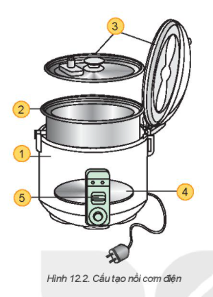 Nồi cơm điện có các bộ phận chính: Nắp nồi; thân nồi; nồi nấu; bộ phận sinh nhiệt; bộ phận điều khiển.