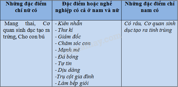 Lí thuyết bài 2 – 3: Nam hay nữ?