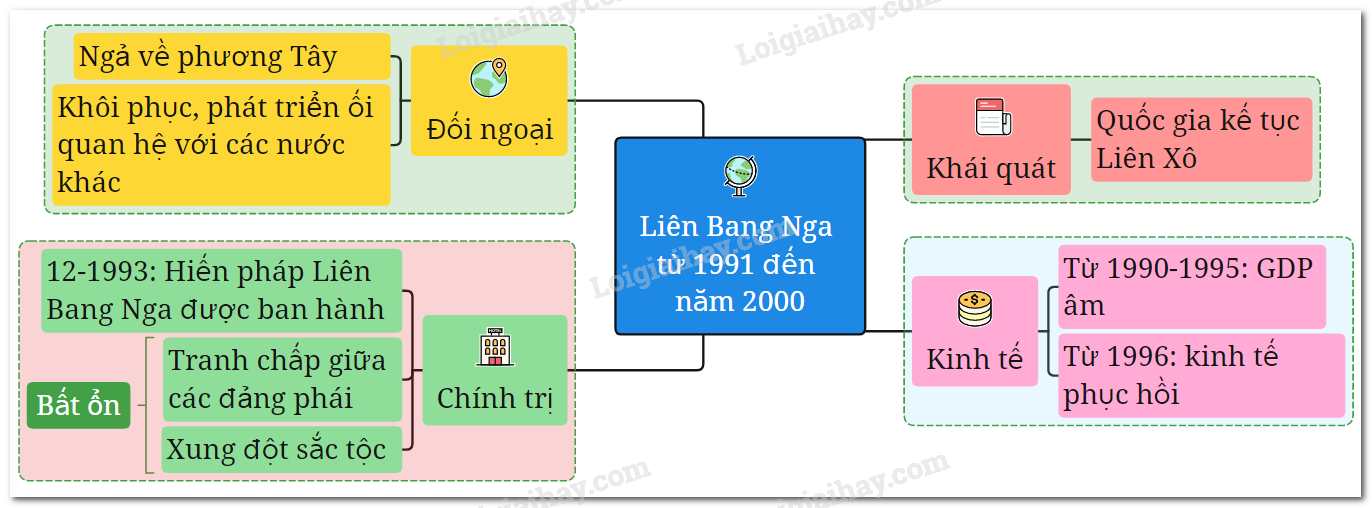 Sơ đồ tư duy Liên Bang Nga từ năm 1991 đến năm 2000