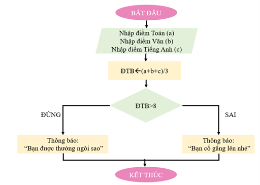 Đầu ra: Thông báo “Bạn được thưởng ngôi sao” hay “Bạn cố gắng lên nhé”.