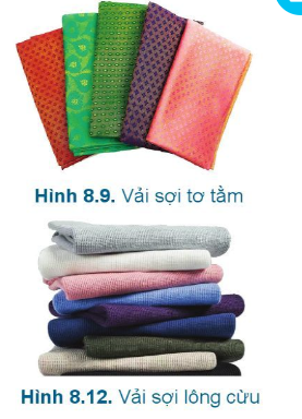 Quan sát Hình 8.3, 8.6, 8.9, 8.12 và kết hợp với thực tế, em hãy nêu nhận xét về các loại vải thường dùng trong may mặc hiện nay