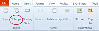 + Chọn Insert/Subtopic để tạo một chủ đề nhánh, thực hiện tương tự với các chủ để nhánh khác và các nội dung trong nhánh.