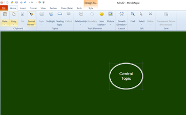 + Sơ đồ tư duy được tạo ra với chủ đề chính là một khung. Nháy chuột vào khung để nhập chủ đề chính.
