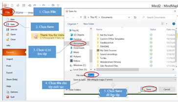 c) Sau khi thực hiện tạo sơ đồ tư duy xong em vào File => Save, chọn vị trí để lưu tệp trong hộp thoại Save As vừa hiện lên, lưu tệp với tên SoLuuNiem.emm sau đó gửi tệp chia sẻ cho thầy cô và bạn bè.