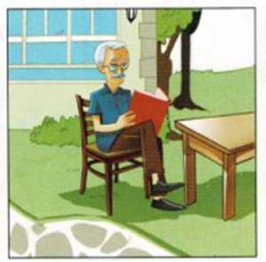 Boy: Oh, is he reading? (À, ông đang đọc sách ạ? )
