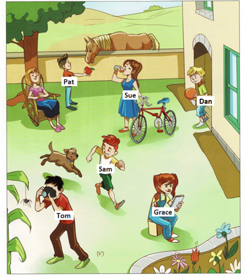 Boy: That’s my friend Tom’s garden, Grandma. (Đó là ở vườn nhà bạn cháu, Tom đó bà.)