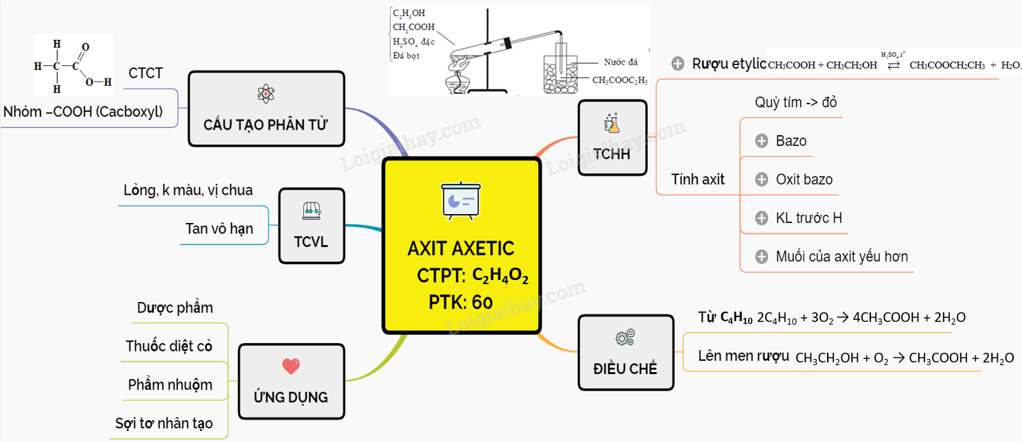 – Trong phân tử axit axetic có nhóm –COOH (Cacboxyl) làm cho phân tử có tính axit.