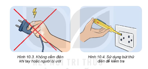 – Không cầm phích điện, đóng cầu dao, bật công tắc điện hay sử dụng đồ dùng điện khi tay hoặc người bị ướt