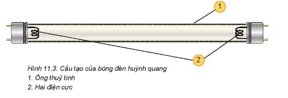 – Cấu tạo gồm hai bộ phận chính: ống thủy tinh (có phủ lớp bột huỳnh quang) và hai điện cực